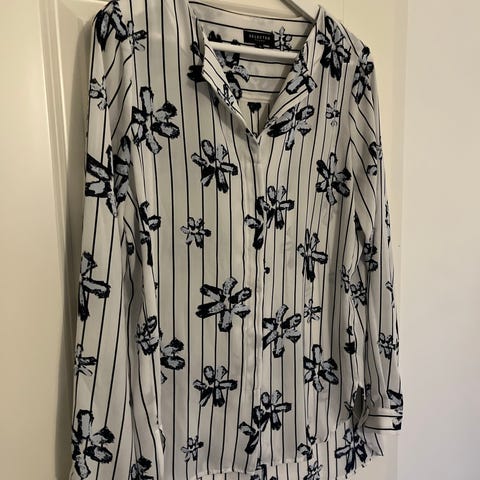 Siisti ja erittäin hyvä kunto, kuin uusi. Tummansininen. Kuvassa säilytyksestä ryppyinen. Hyvin istuva suora rento malli. Menee koossa s-m. Piilonapitus edessä.