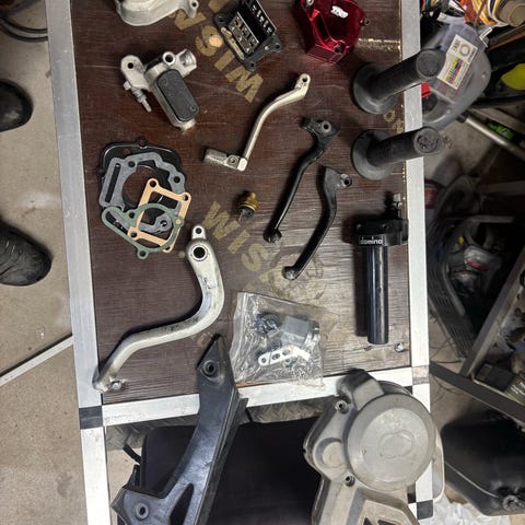 Mopo roinaa jäänyt mopoajoilta talliin saa tulla hakemaan ja ihmettelemään derbin osia löytyy varmasti eniten kysy rohkeasti jos kiinnostaa niin katson löytyykö
