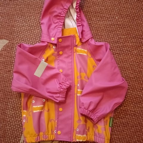 Vaatteet sadetta varten. Huolimatta siitä, että koot ovat erilaisia, lapseni käytti näitä vaatteita yhdessä 86-cm alkaen ja pitkään sen jälkeen. Täydellinen sateisiin päiviin päiväkodissa