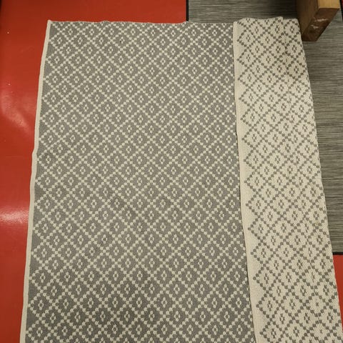 Funkis matto on villaa. Matto on pudas, valmis käyttöön. Keltaisempi kohta ei lähtenyt pesussa. Käytössä on huomaamaton. Taloudessa ei eläimiä, ei tupakointia. Nouto.