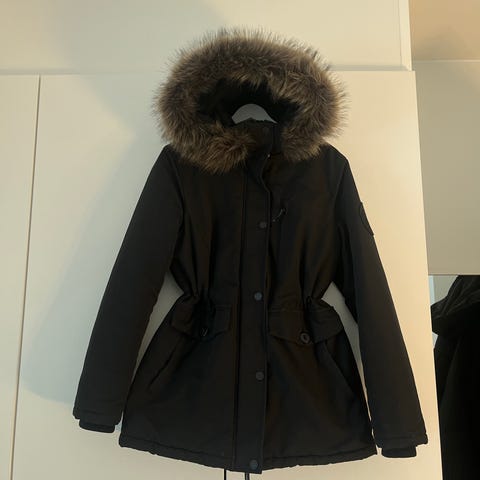 Superdryn talvitakki koossa L. Irroitettava huppu, takki jäänyt liian pieneksi
