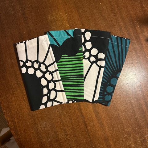 Marimekon Siirtolapuutarha-kangaskassi ja -servetit