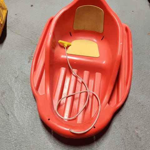 Myydään vähän käytetty punainen vauvapulkka. Nouto Siilitien metroaseman vierestä. Pulkassa on selkänoja ja turvavyö.
