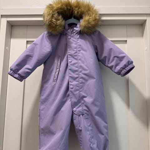 Kahden lapsen käyttämä vaaleanpunainen haalari koossa 80. Polvissa ja pepun kohdalla hieman käytönjälkeä (kuvissa). Vaalealle värille tyypillistä tummentumaa, jota en ole erikseen yrittänyt poistaa. Jalkalenksut tästä puuttuu.