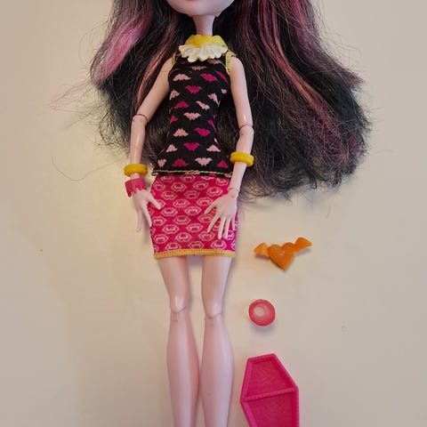 Myydään Monster High Cleo DeNile nukke. Mukana kuvassa näkyvät tarvikkeet.