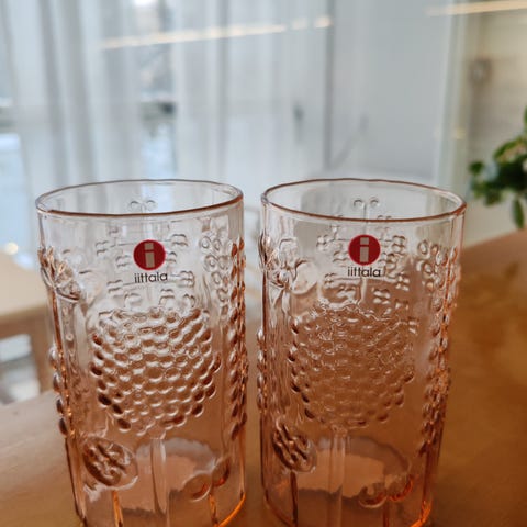 Uudet käyttämättömät flora juomalasit alkuperäisessä pakkauksessa. Lasin kork.10cm
