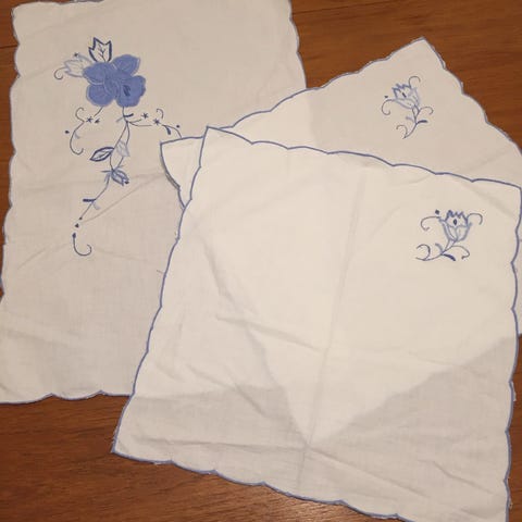 Käsinpainettu käyttämätön pöytäliina, 54x75 cm.