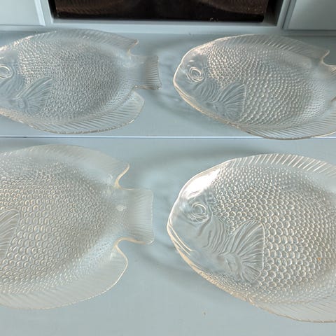 Arcoroc Poisson mallisto, Ranska, 5kpl kalalautasia. Valmistettu 70-80-luvulla.Kaikki ehyitä. Koko 10x8cm.Sopii esim. Mädin tarjoiluun. Yhteishinta. Myynnissä myös muualla. Vain toridiilinä.