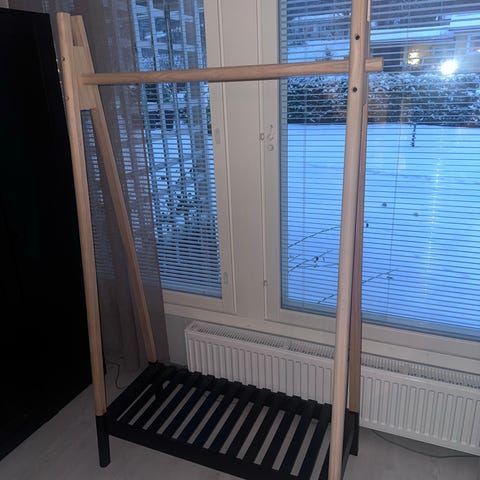 Jysk:n vaateteline kenkähyllyllä. Siistissä kunnossa. Joitain melko huomaamattomia käytön jälkiä erityisesti henkareista.