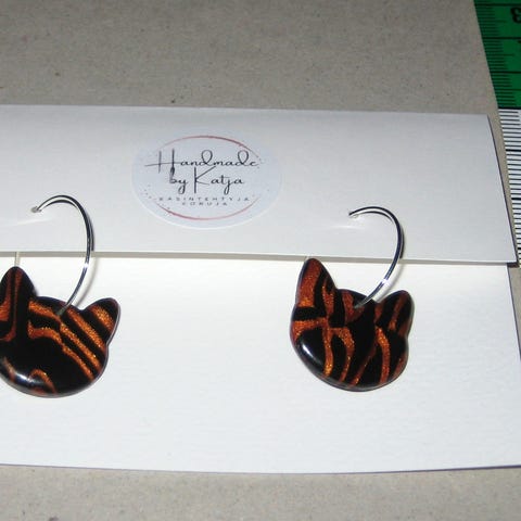 Käsin tehdyt kissa korvakorut. Muotoiltu fimo-massasta.