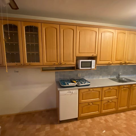 Annetaan keittiön yläkaapit täyspuuovilla. Puretaan ensi viikolla. Nouto kalkusta