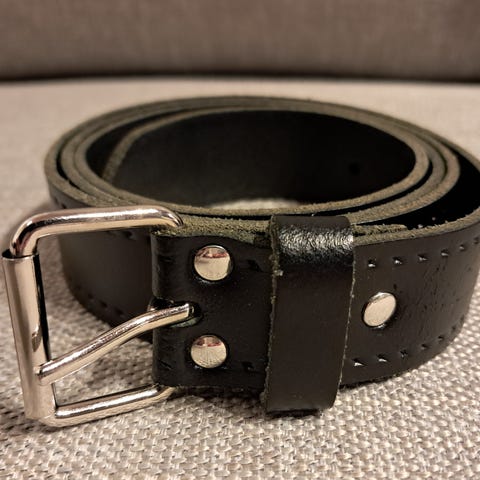 Väri ruskea. Vyön pituus soljen päästä mitattuna 111 cm, leveys 3 cm.