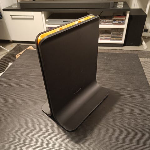 Uusi veitsitukki / veitsiteline ilman veitsiä. Mitat 13x20x25 cm, materiaali muovi.