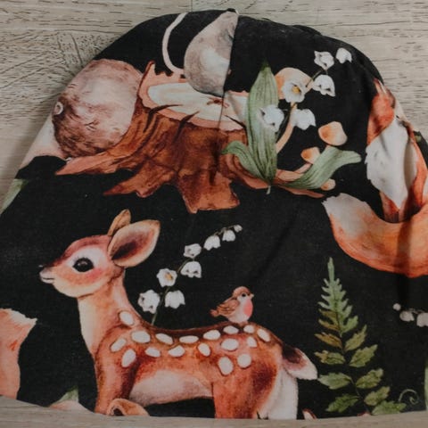 Lasten puuvillainen pipo merinovilla-vuorella koko M (ympärys n.48cm). Hinta 8€.