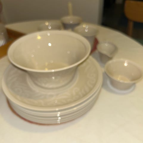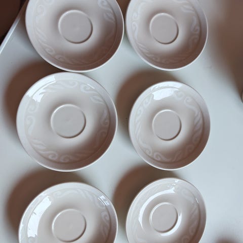 Myydään edullisesti muuton tieltä ylimääräisiä astioita. Vähällä käytöllä olleet. Toisessa kuvassa oleva tarjoiluastia II laatua, yksi musta piste pohjassa. Kahvikupin aluslautasia 6 kpl, pieniä lautasia 5 kpl.