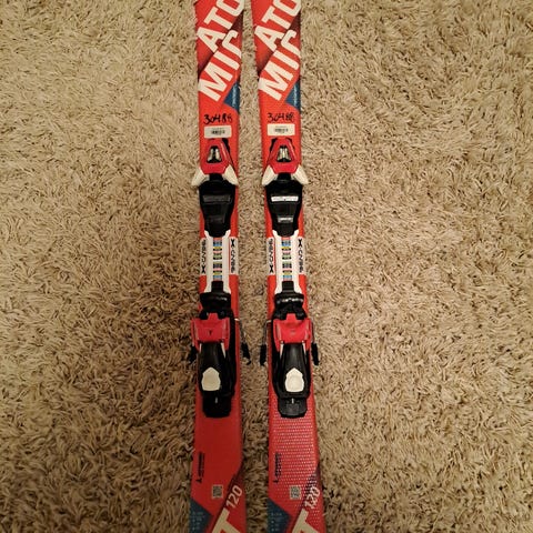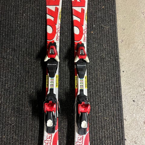 Atomic Race 5 laskettelusukset, pituus 110 cm. Jonkin verran naarmuja pohjassa, mutta hyvät edelleen.