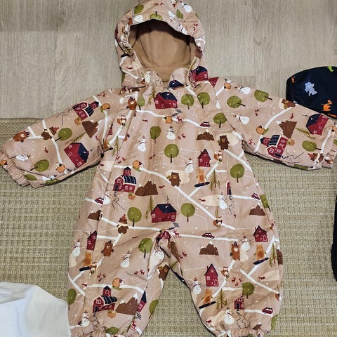 Myydään 62cm toppahaalari. Väri musta/sininen. Heijastinyksityiskohtia. Huppu irrotettavissa, nappikiinnitys. Kuminauhat lahkeissa.