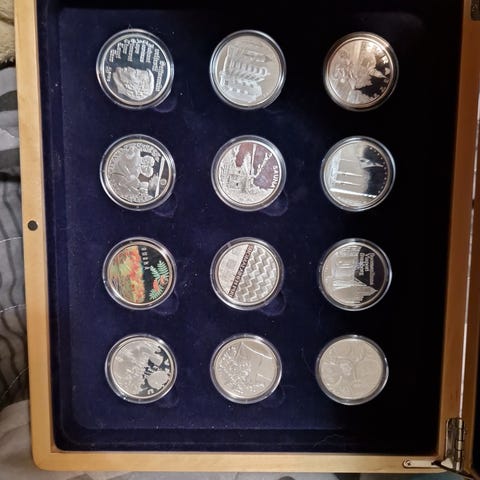 Rahapaja oy suomitaisteli 19 mitallia hopearahasarja todistuksineen.