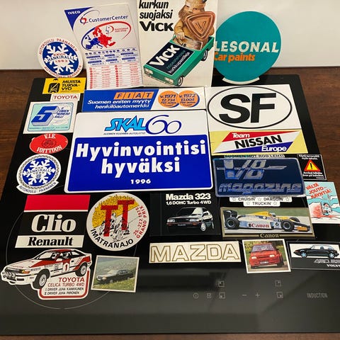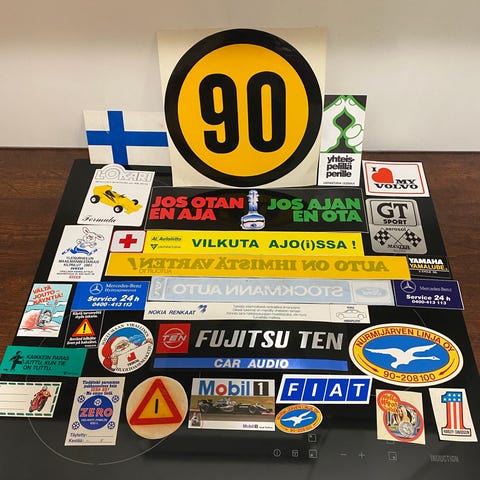 30 vanhaa ja siistiä autoiluaiheista tarraa.