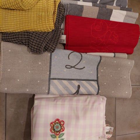 Annetaan kaksi mattoa, koko 160 x 230 m. Päissä rispaantumaa. Matoissa on tahroja, jotka lähtevät pesemällä. Olleet käytössä lasitetulla terassilla.