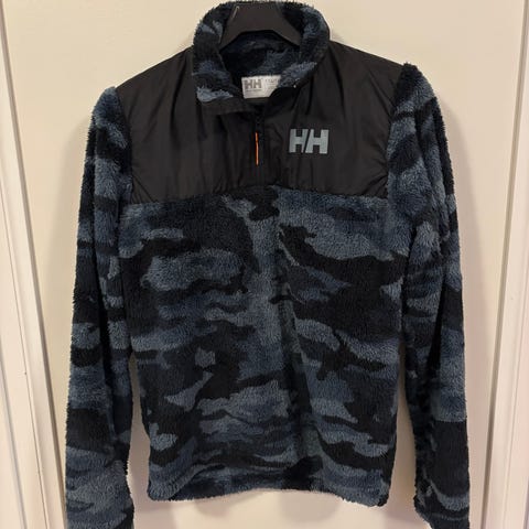 Hyväkuntoinen beige Helly Hansen fleece pusero, edessä lyhyt vetoketju.