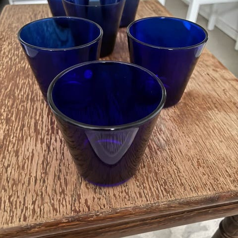 4 kpl Iittalan koboltinsinisiä Kartio Kaj Franck isoja juomalaseja/olutlaseja. Lasin korkeus 12,5 cm, halkaisija 8cm ja tilavuus 40 cl. Kauniit lasit ja erittäin hyvässä kunnossa, koska ovat olleet vähällä käytöllä ja pesty käsin. 10 €/kpl, kaikki neljä yhteensä 35 €.