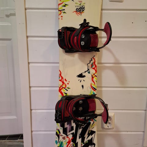 Fireflyn 130 cm lumilauta, jossa valkoiset fireflyn siteet mukana. Laudalla on muutaman kauden verran laskettu, mutta pidetty hyvää huolta. Muutamia kolhuja on laudan ulkoreunoilla näkyvillä, jotka näkyvät myös kuvissa, mutta muuten yleisilmeeltään hyvässä kunnossa. Pohjassa on muutama hieman isompi naarmu, mutta muuten pohjan kuluma normaalia luokkaa. Myös laudan kantit ok kunnossa.