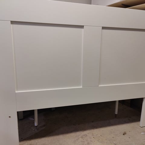 Täältä ostettu valkoiseksi maalattu puinen sängynpääty metalli koristeella. Olettaisin että materiaali acazia. Sopii 160-180cm leveään sänkyyn ja korkeus riittää myös jenkkisängylle. Takana kiinnitys aukot mutta hyvin pysyy paikallaan ilman kiinnitystäkin. Jäi itselläni turhaksi kun vaihdoin pienempään sänkyyn. Saa tulla katsomaan ennen ostopäätöstä. Ei kuljetus mahdollisuutta.