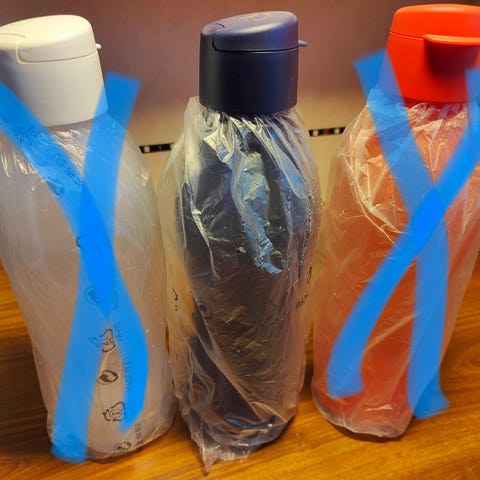 Hyväkuntoiset Tupperwaren pullot öljylle tai esim. sakaatinkastikkeelle. Korkki aukeaa pullosta kaadettaessa. Pullossa on mukana sihti. Voin myydä myös 6 €/kpl.