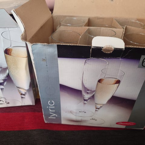 9 lasia. Korkeus 15 cm ja halkaisija ylhäältä 5,5 cm, alhaalta muutaman millin isompi.