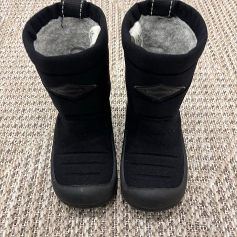 Kuoma lasten talvikengät, koko 23, unisex. Kengät ovat mustat rakettikuvioin. Materiaalina on kestävä ja lämpöä eristävä kangas ja kumipohja. Kengissä on lämmin vuori. Nimikoidut. Käytetty kahdella. Hyvät kengät seuraavalle pienokaiselle. Kunto kuvien mukainen. Ei ole koskaan erikseen pestyt.