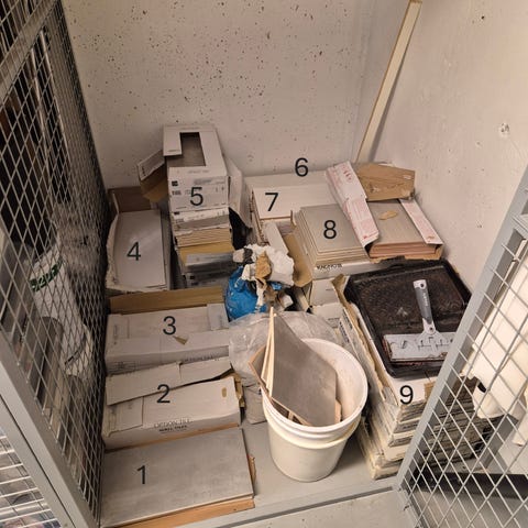 Kuvan mukaisia seinälaattoja 5kpl, koko näyttäisi olevan 31,5x56,5cm.