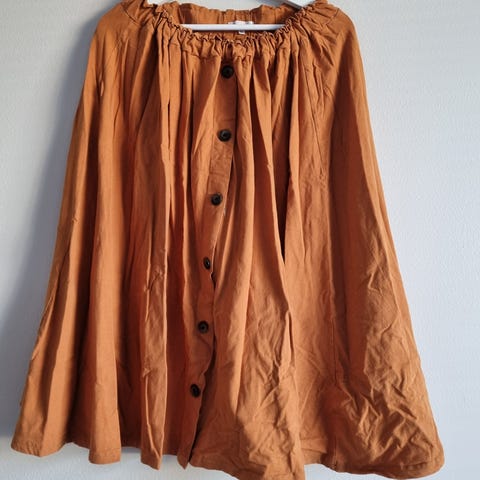 Uudenveroinen, erittäin nätti, siisti ja miellyttävän joustava kankainen viskoosi liivihame. Elastaania 8. Hauska, hieman vino kaulus. Kahdet erilaiset napit. Helmassa kiva leikkaus. Kellottuva helma. Täysin musta. Kuvassa väri vääristyy. Kai-Kai 55, olka-helma 102. Bloomit.