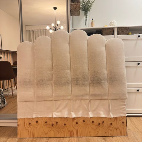 Myydään tumman vihreästä laadukkaasta sametista itse tehty sängynpääty.