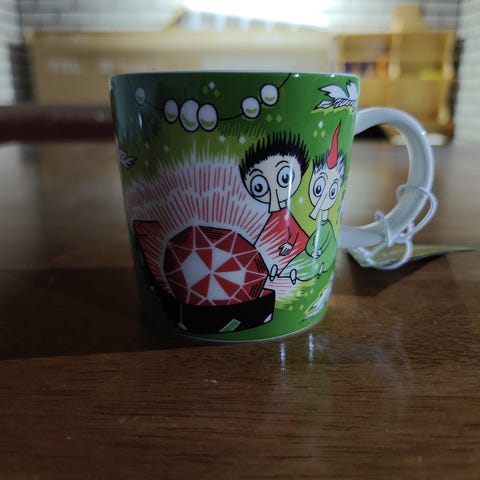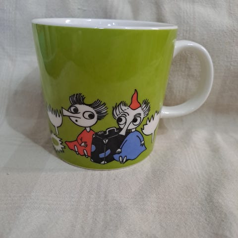 Myydään uskomattoman upean värinen muumimuki (Moomin characters): Arabia Tiuhti ja Viuhti eli aika hupaisasti ulkomaaksi, Thingumy & Bob 😁 Nyt ovat punaisen ja vihreän sävyt täysin täydelliset. Tiuhti ja Viuhti eivät ole hahmoina suosikkejani, joten löytäkööt jonkun luo, ketä näitä hassunimisiä olioita fanittaa.
