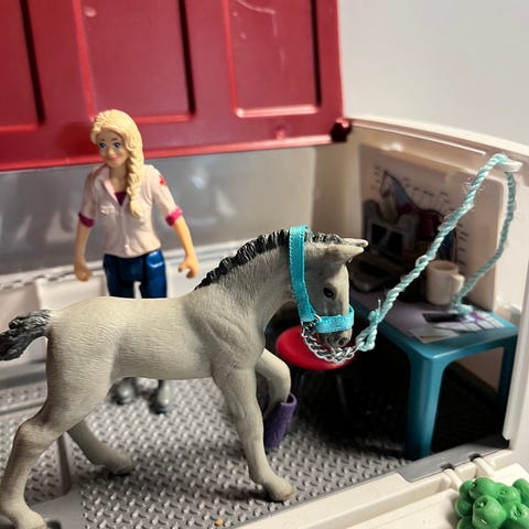 Myydään Schleich eläinlääkäri auto ja tarvikkeet, sekä eläinlääkäri. Ainakin suurin osa alkuperäisistä tarvikkeista on mukana! Kysy jos haluat lisätietoja! Kuvissa näkyy kaikki tarvikkeet mitkä tulevat mukana. Kaikki siistissä kunnossa. Varsa puuttuu kuvasta, mutta tulee mukaan!