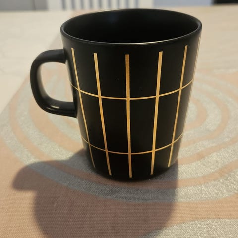 Marimekko Oiva tiiliskivi muki 2dl kultaisilla raidoilla