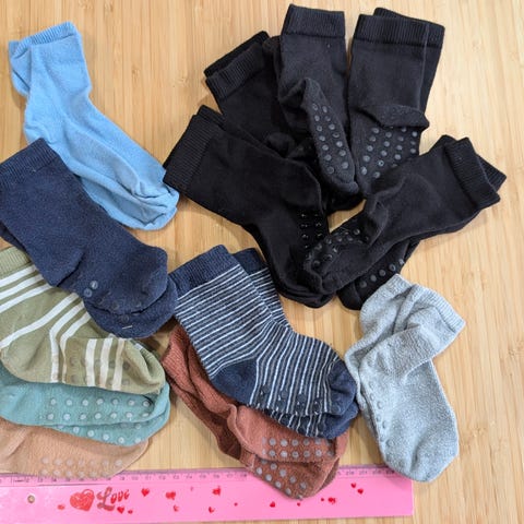 Sukkapaketti, 17 paria sukkia, koko 28-30. Pääosin Lindexin sukkia.