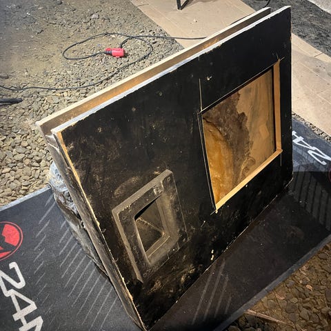 Subwoofer kotelo 30mm mdf levystä. Vähän elämää nähnyt mutta tukevan olonen.
