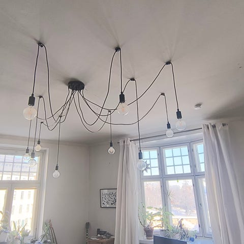2 kpl käyttämättömiä Bazar ikkunavalaisimia. Valaisimen halkaisija on 17 cm ja korkeus 18 cm. Siihen sopii E27-kantainen lamppu. Johto on 3,5 m kirkkaan värinen ja siinä normaali pistorasiaan sopiva pistoke ja katkaisin, sekä S-koukku, jolla lampun saa halutulle korkeudelle. Väri on nimeltään hiekanmusta, omaan silmään se on tumman harmaa. 25 eur/kpl.