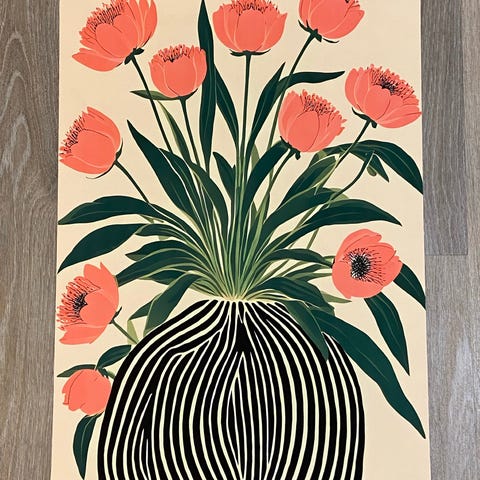 Hakusanat: kukkajuliste, tulppaanit, juliste, seinätaide, sisustusjuliste, keväinen sisustus, art print