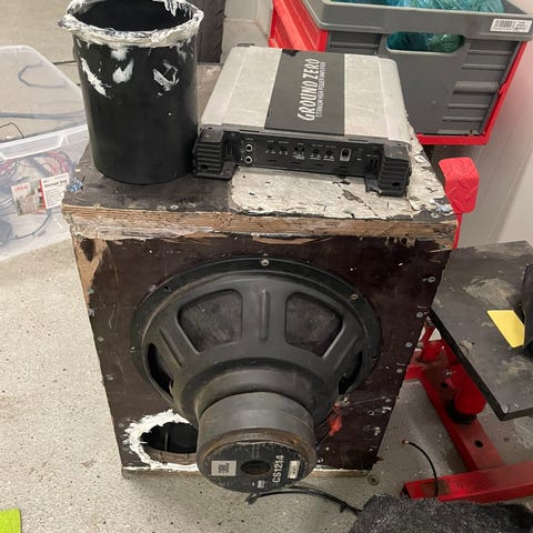 JBL 1000w sub-woofer GS Series 28x28cm sub. 37x33x21x41cm cadd some fabric separated from the cadd nothing glue cannot fix