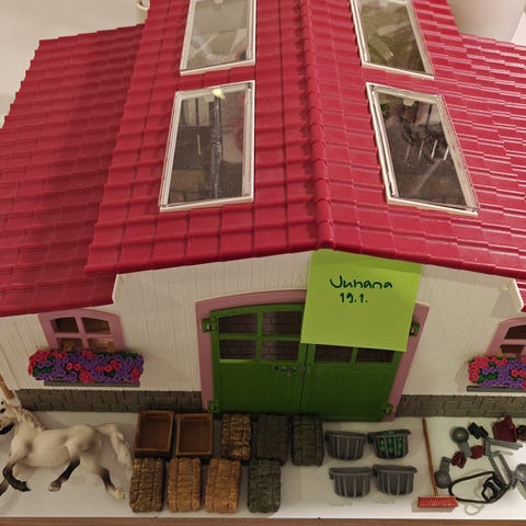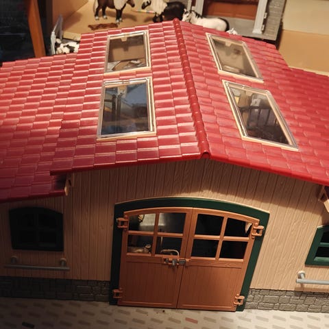 Schleich talli, pilttuut, suihku paikka, aidat.