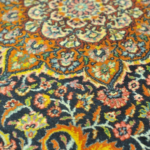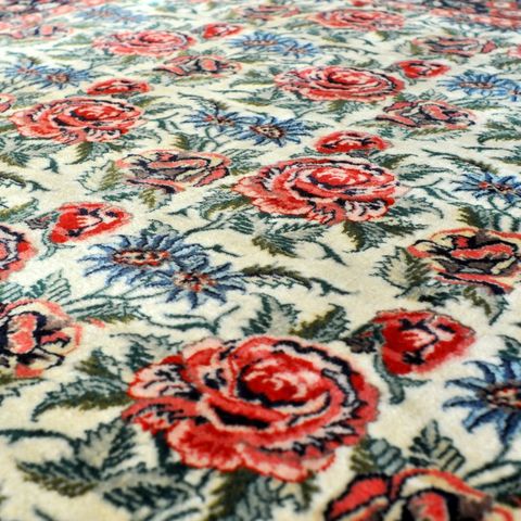 Erityistä: Poikkeuksellisesti silkkiloimelle solmittu matto, jonka nukassa on sekä villaa että silkkiä. Melko harvinainen värimaailma ja Kaukasuksen ns. Kazak-mattojen inspiroima kuviointi.