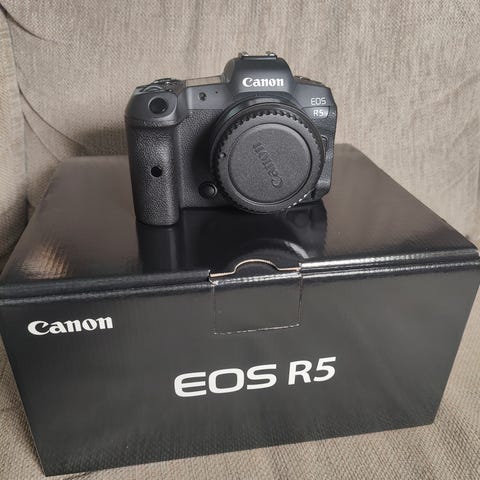 Canon R 5 (shutter count noin 8400) ja 3kpl Aku