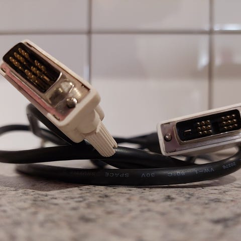 DVI-D dual link kaapeli, otettu toimivana irti näytöstä.