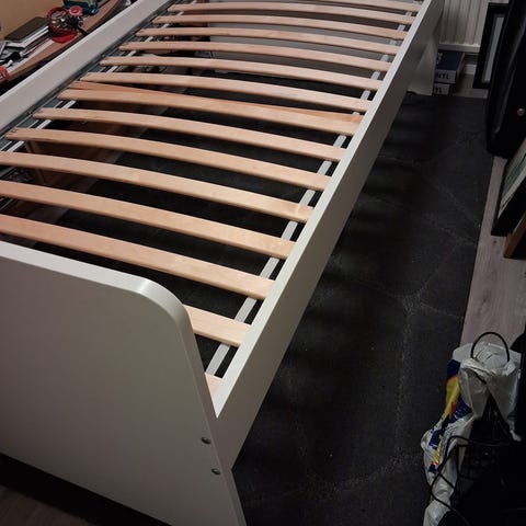 Myydään pieni tyylikäs lasten sänky; patjan koko 120x60 (patja ei sisälly kauppaan); Materiaali: vaneri; nouto Espoon Kilosta