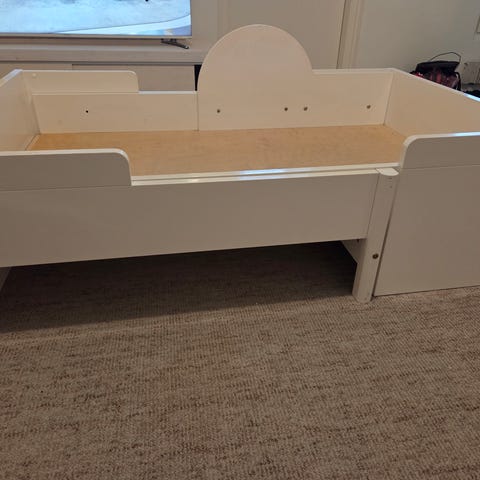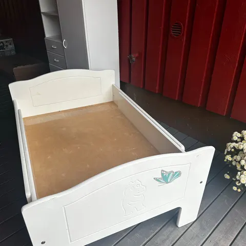 Muurame jolla jatkettava sänky. Patja ja ohut petari mukaan. Pientä käytönjälkeä voi olla mutta ehjä.