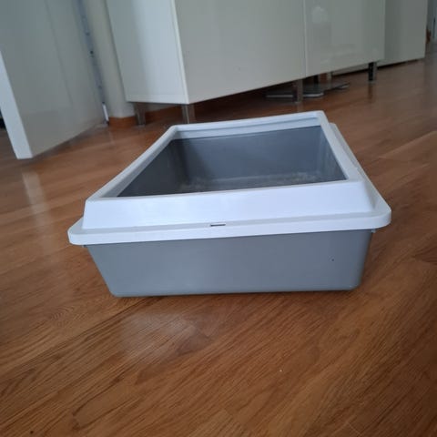 Myydään vaaleanpunaharmaa siivilällinen pellettihiekkalaatikko, joka on ollut käytössä vain yhden lyhyen kokeilun ajan ja todettu meille toimimattomaksi. Vain nouto.