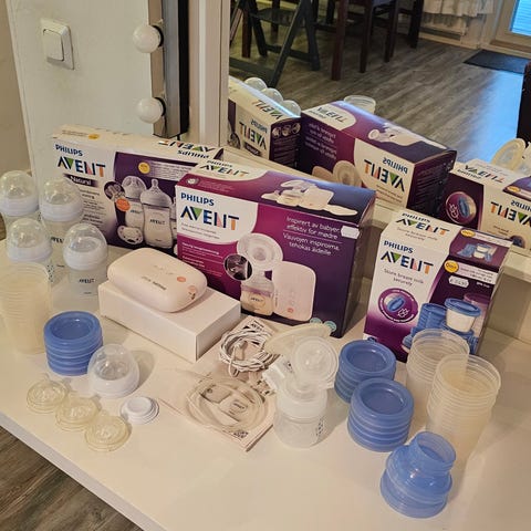 Ehkä säkin ajattelit että rintaruokintaan tarvitaan vain luonnon antamat tykötarpeet? Niin mäkin, ja sitten nöyrryin vempele kerrallaan ja lopulta mulla oli kaikki nämä käytössä 😅 Nämä olivat välttämättömät osittaisimetyksessä ja keskosen kanssa ja helpottivat myös kun lapsen jätti toisen hoitoon.